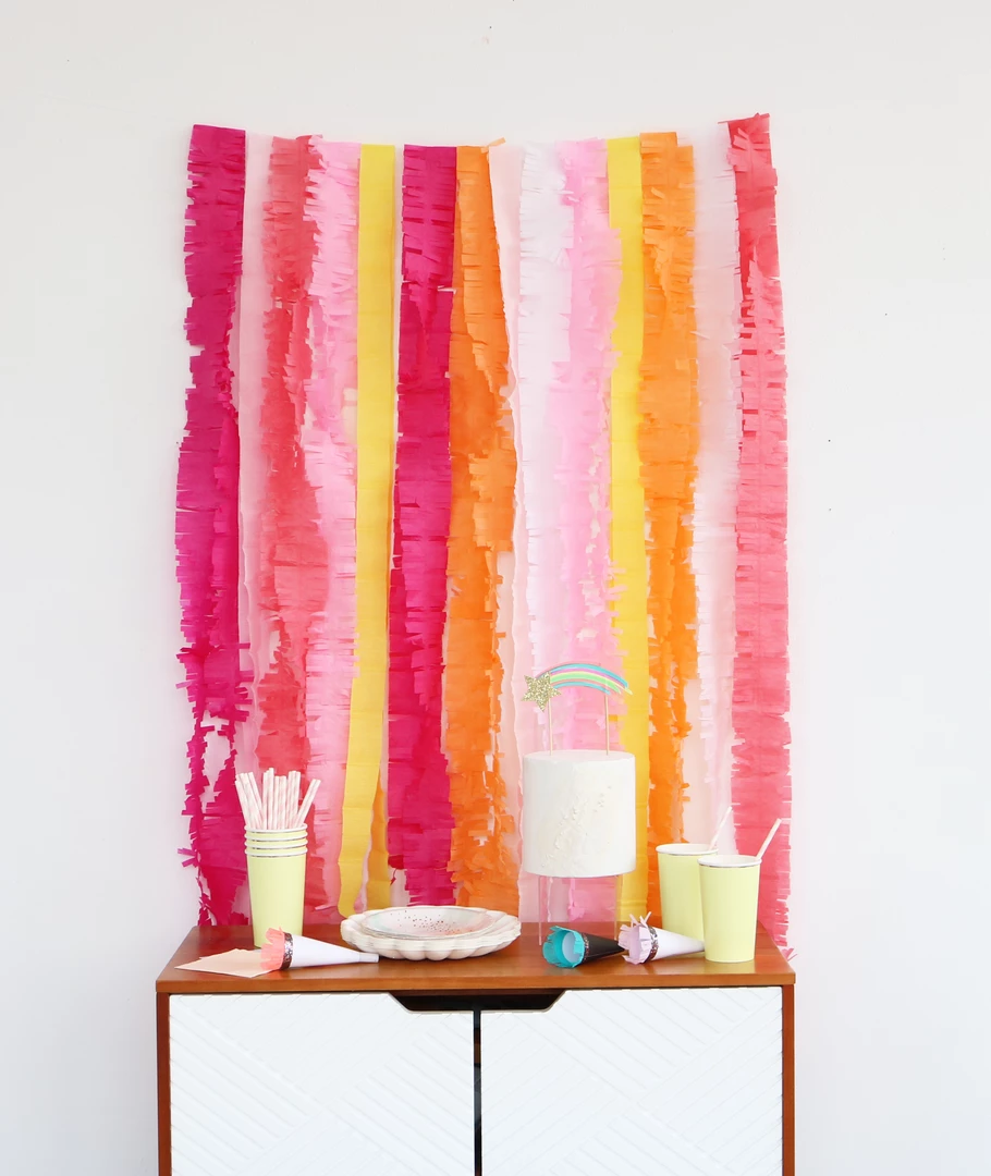 How do you create an instant party? Our Streamer Sets are the answer! Perfect as a backdrop for a dessert table, a photo booth or to add a riot of colour to any area.