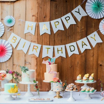 This chic modern banner will add a beautiful backdrop to your next birthday party.