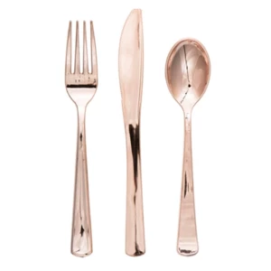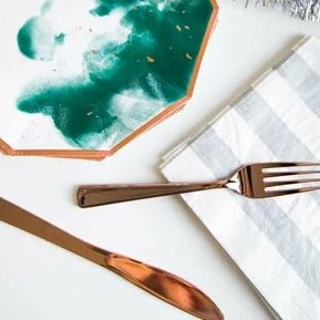 Give us all of the rose gold! These will dress up your table and no one will believe these are disposable.