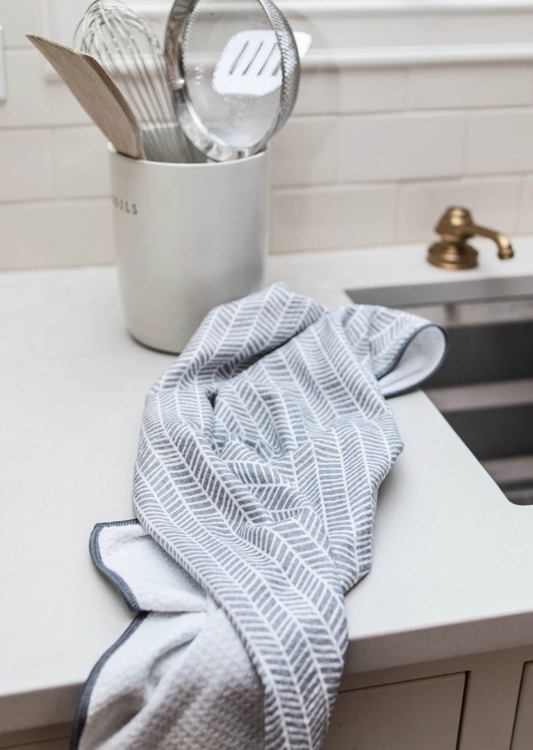 A Dish Towel that Delivers. Soaking wet hands, just-washed dishes, or spilled on surfaces? No problem. This is a kitchen towel that exceeds expectations with its high absorbency.