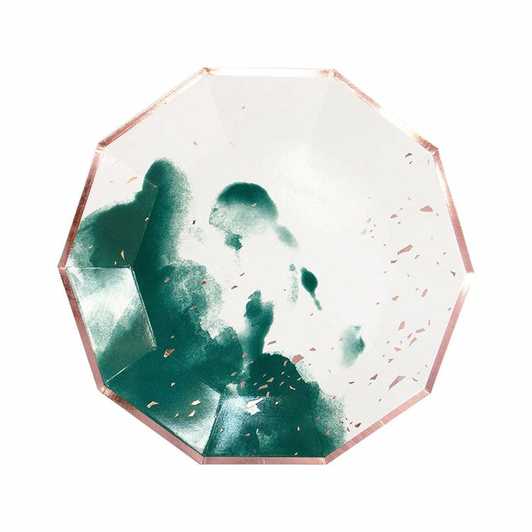 Modern and sophisticated, our rose gold-rimmed watercolor decagon party plates display style and taste. Perfect for showers, birthdays, special occasions and holidays.
