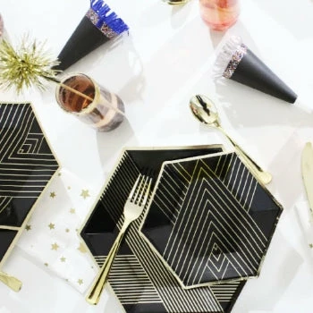These art deco inspired dinner plates are a show stopper to any table setting. Pictured with our ‘Let’s Celebrate! Party Box’