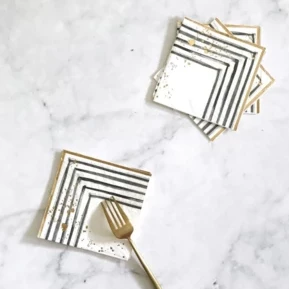 Swanky cocktails, anyone? Adorned with gold splash details, pair our modern and edgy brushstroke cocktail napkins for a girls night out, a posh birthday party, or a special event!