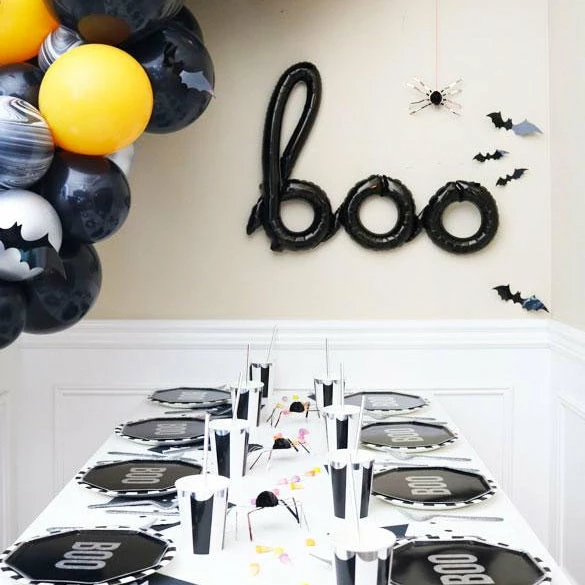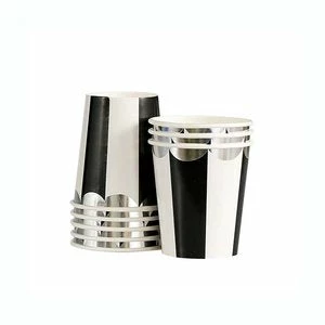 These elegant party cups come decorated with a thick black and white stripe and are embellished with a gold foil scallop rim.