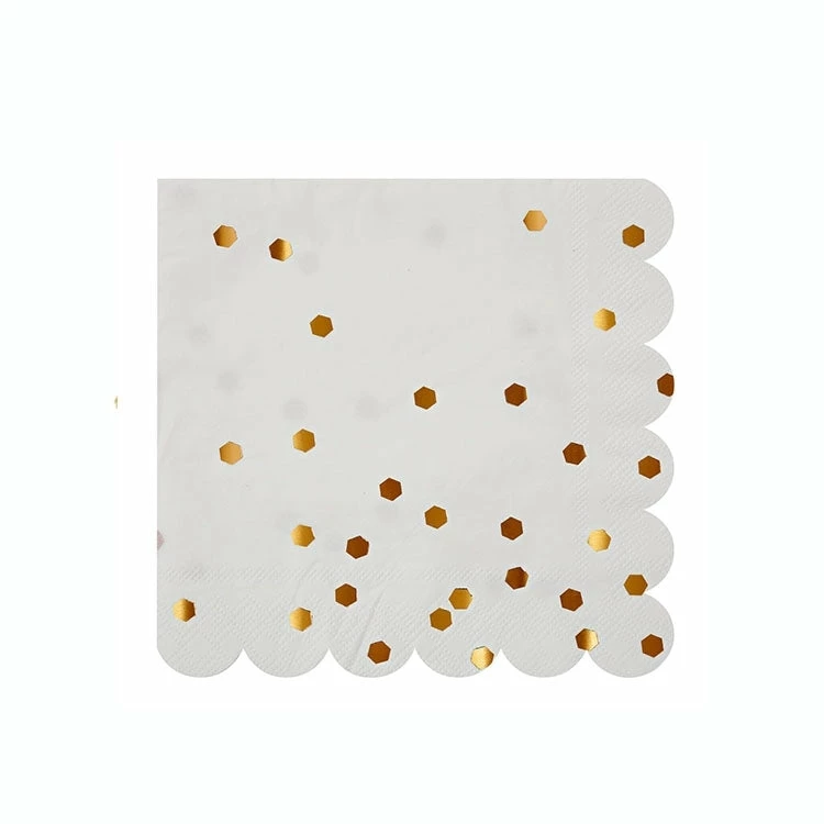 These chic napkins are sprinkled with a geometric pattern in luxury rose gold shiny foil and finished with a scollop edge.