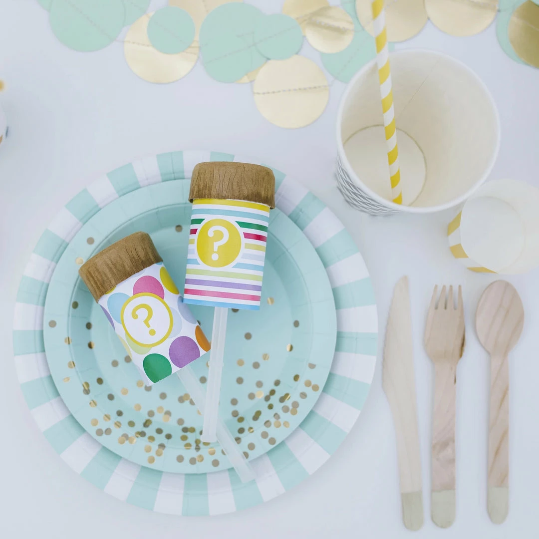 A perfect combination of soft mint with gold confetti accents are to much fun to pass up!