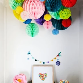 Hang ’em as high as the sky! These honeycomb tissue balls are fun ceiling decorations they can also be be used to accent table decorations. Available in two sizes.