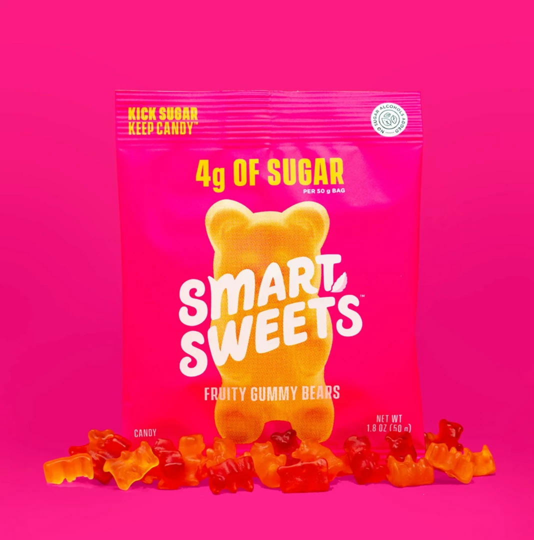 Fruity Gummy Bears are the SmartSweets OGs! Fruity, juicy, chewy and everything you want a gummy bear to be! Bursting with 4 delicious flavors: raspberry, apple, lemon and peach! These gummy bears are all-natural, low in sugar, low in calories, and high in dietary fiber. Unlike all other gummy candies on the market, you won’t find any sugar alcohols or artificial sweeteners in these little guys – plus every ingredient is non-GMO. The revolution is here, time to get smart and KICK sugar!