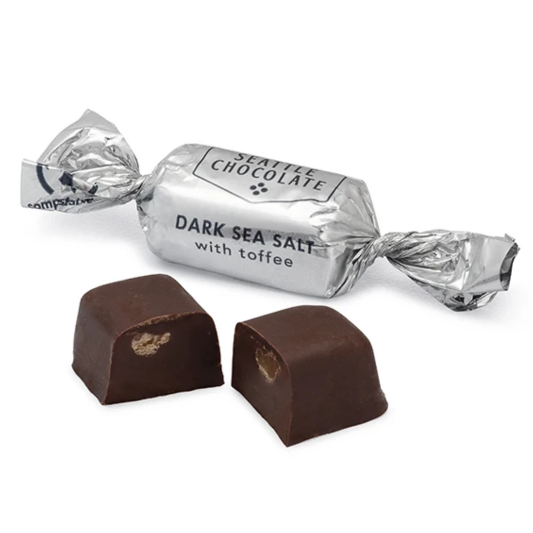 Crunchy toffee with a hint of sea salt in our classic dark chocolate.